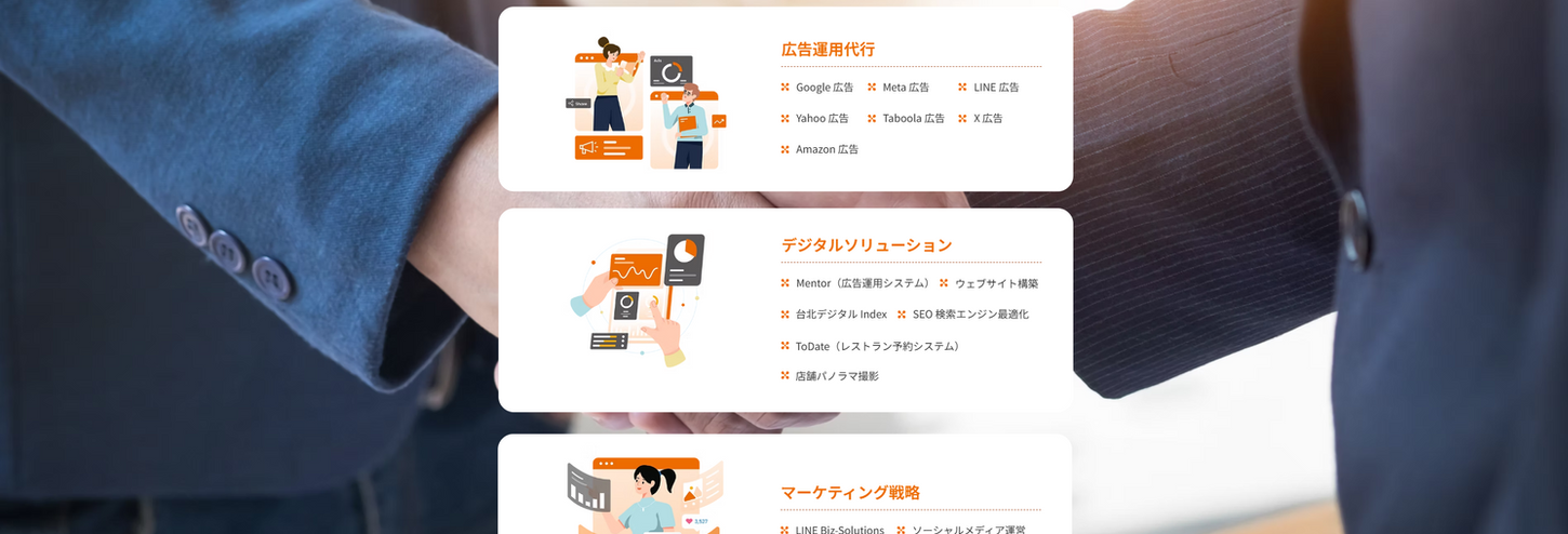 TD Japan is a newly established branch of Taipei Digital Group, headquartered in Tokyo. As a digital transformation (DX) company, it provides digital solutions and creative advertising services for small and medium-sized enterprises (SMEs), with a focus on bridging the digital divide in rural areas through tailored DX services.